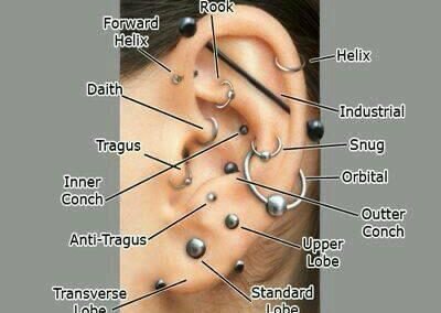 • Surface piercings (perforaciones superficiales en distintas áreas)