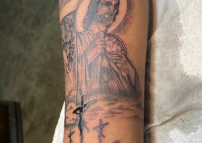 Cada tatuaje cuenta una historia única. En este portafolio encontrarás una muestra del trabajo de Sergio Gómez, donde técnica, arte y experiencia se unen para crear piezas personalizadas que trascienden la piel. Desde trazos delicados hasta composiciones de mayor complejidad, cada obra refleja el compromiso con la calidad, la limpieza y el respeto por la identidad de quien la lleva.
